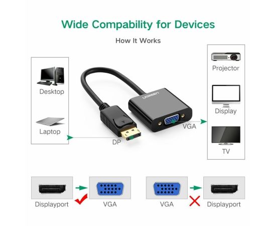 Конвертер UGREEN DP109 20415 DP Male to VGA Female Converter Black