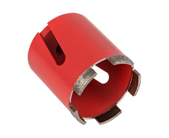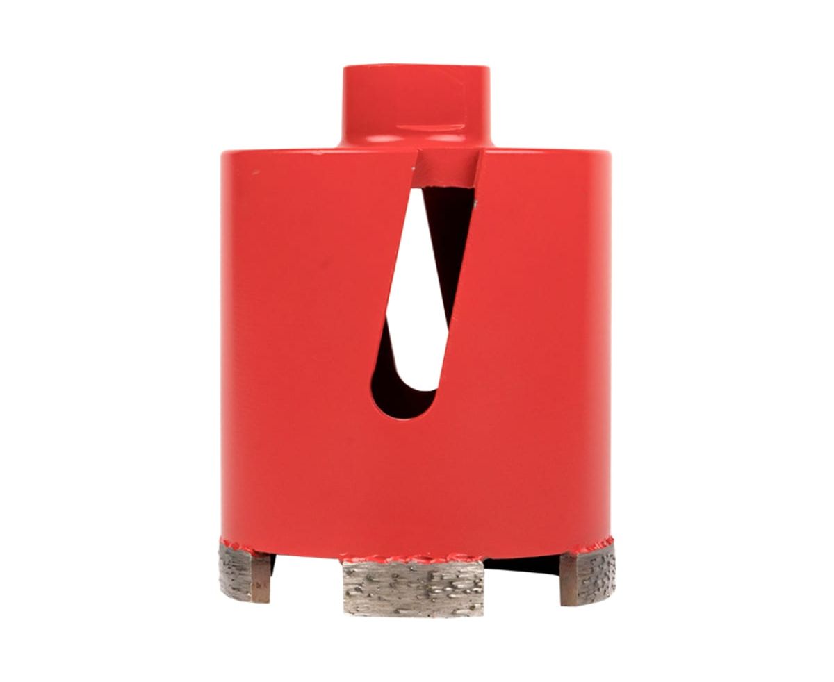 Коронка алмазная служит для сухой резки в бетоне, кирпиче, природном и искусственном камне и плотном известняке с помощью перфоратора с отключенной функцией удара. Имеет 5 режущих сегментов с увеличенным количеством вскрытых промышленных алмазов для высокой скорости реза. Удобная система быстрого снятия центрирующего сверла для увеличения скорости реза и сохранения ресурса инструмента.