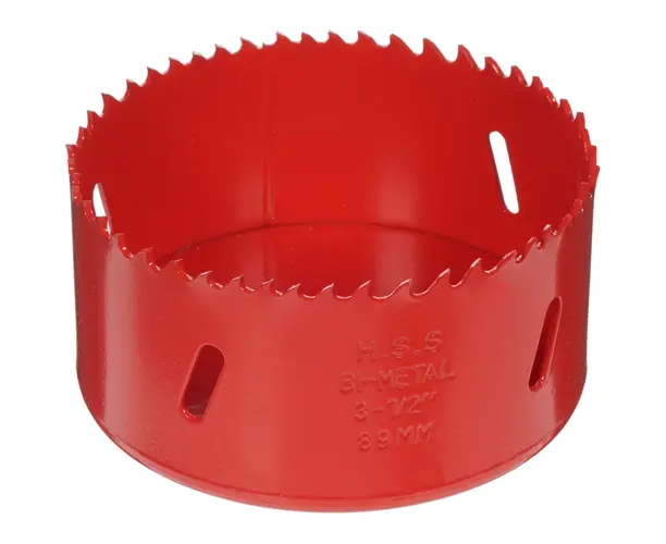 Буровая коронка обеспечивает создание круглых отверстий большого диаметра в заготовках из черного и цветного металла, пластика. Поддерживающая эксплуатацию с обычной электродрелью или сверлильным станком единица оснастки имеет корпус из углеродистой стали, при этом ее рабочая часть с режущими зубьями выполняется из быстрорежущей стали. Биметаллическая коронка для использования в режиме безударного сверления обладает рабочей длиной 39.2 мм и диаметром рабочей части 89 мм.