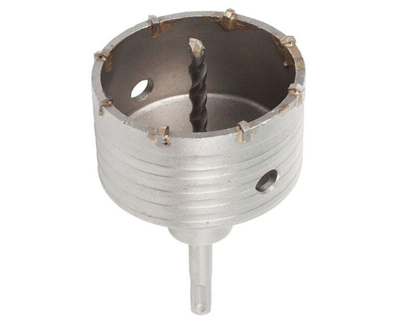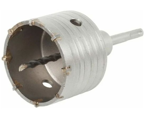 Коронка полая по бетону для ударного сверления и изготовления отверстий в неармированном бетоне, кирпичной кладке, силикатном кирпиче диаметром 68 мм. Используется в перфораторах с типом крепления SDS-plus для высверливания глухих подрозеточных отверстий и отверстий для распределительных монтажных коробок. Поставляется в сборе с хвостовиком SDS-Plus и центрирующим сверлом.