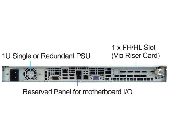 Корпус Ablecom CS-R11-55P 1U chassis, Mini-ITX, Micro-ATX, ATX MBs, 4 x 3.5'' hsb, 2 USB, 1 COM port (Front), FH expantion slot, 600W (1+1)