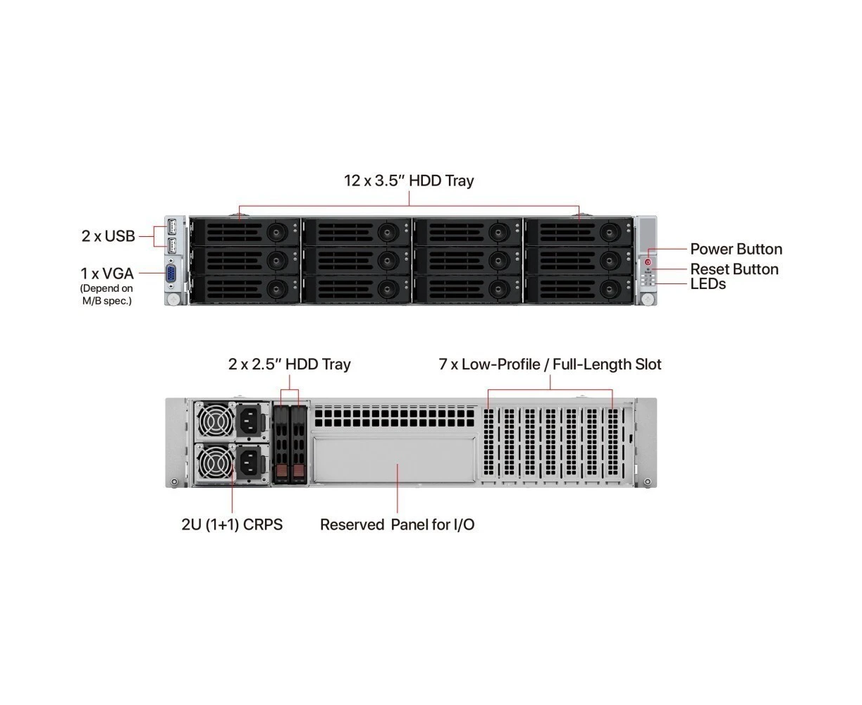 Корпус Ablecom CS-R29-05P 2U chassis, E-ATX, ATX, Micro-ATX, Mini-ITX MBs, 12 x 3.5'' hs, 1200W CRPS(1+1), no rails