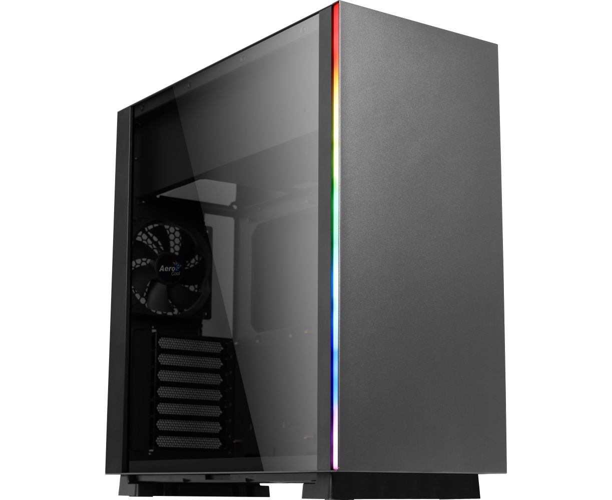 Корпус Aerocool Glo (2xUSB, 2xAudio, 120 мм FAN, RGB подсветка, прозрачная стенка-закаленное стекло, ATX, без БП)