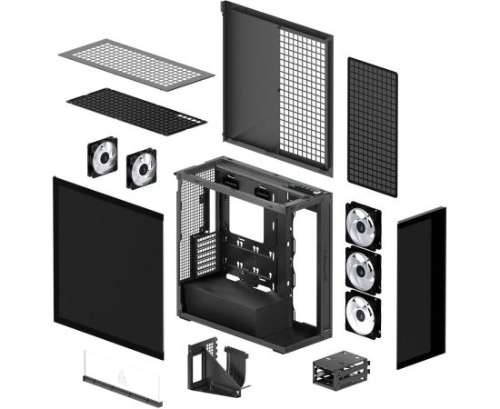 Корпус, вентиляторы 5 шт, пылевые фильтры 2 шт, документация, кронштейн для видеокарты, набор крепежа, райзер PCI-E x16