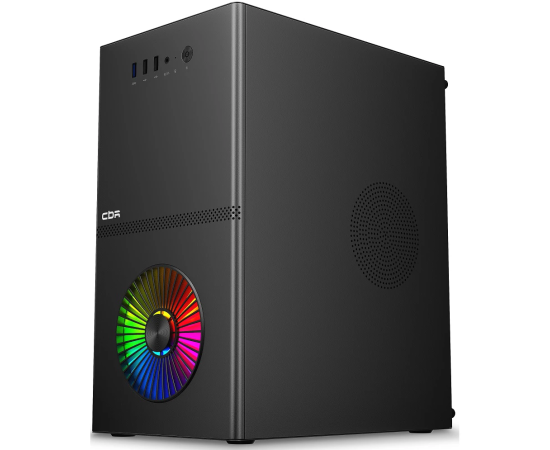 Корпус CBR V867 (PCC-MATX-V867-WPSU), без БП, mATX Minitower, 1*USB 3.0, 2*USB 2.0, HD Audio+Mic, Rainbow Fan, Black