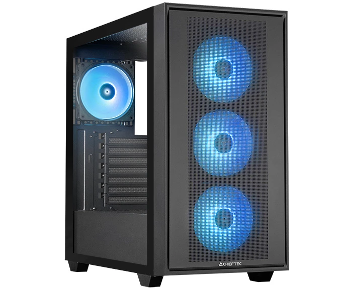 Корпус CHIEFTEC Hunter 3 GS-03B-OP без БП, боковая панель из закаленного стекла, 3xARGB LED 120мм спереди, 1xARGB LED 120мм сзади