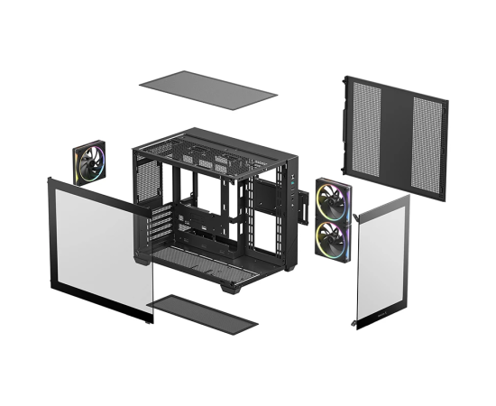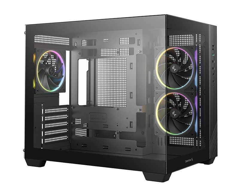 Корпус Deepcool CG330 3F без БП, боковое окно (панорама), 3x120mm ARGB PWM вентилятора, черный, mATX