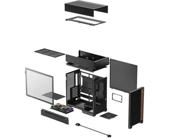 Корпус Deepcool CL660 без БП, боковое окно (закаленное стекло), 2x120мм ARGB вентилятор снизу, черный, ATX