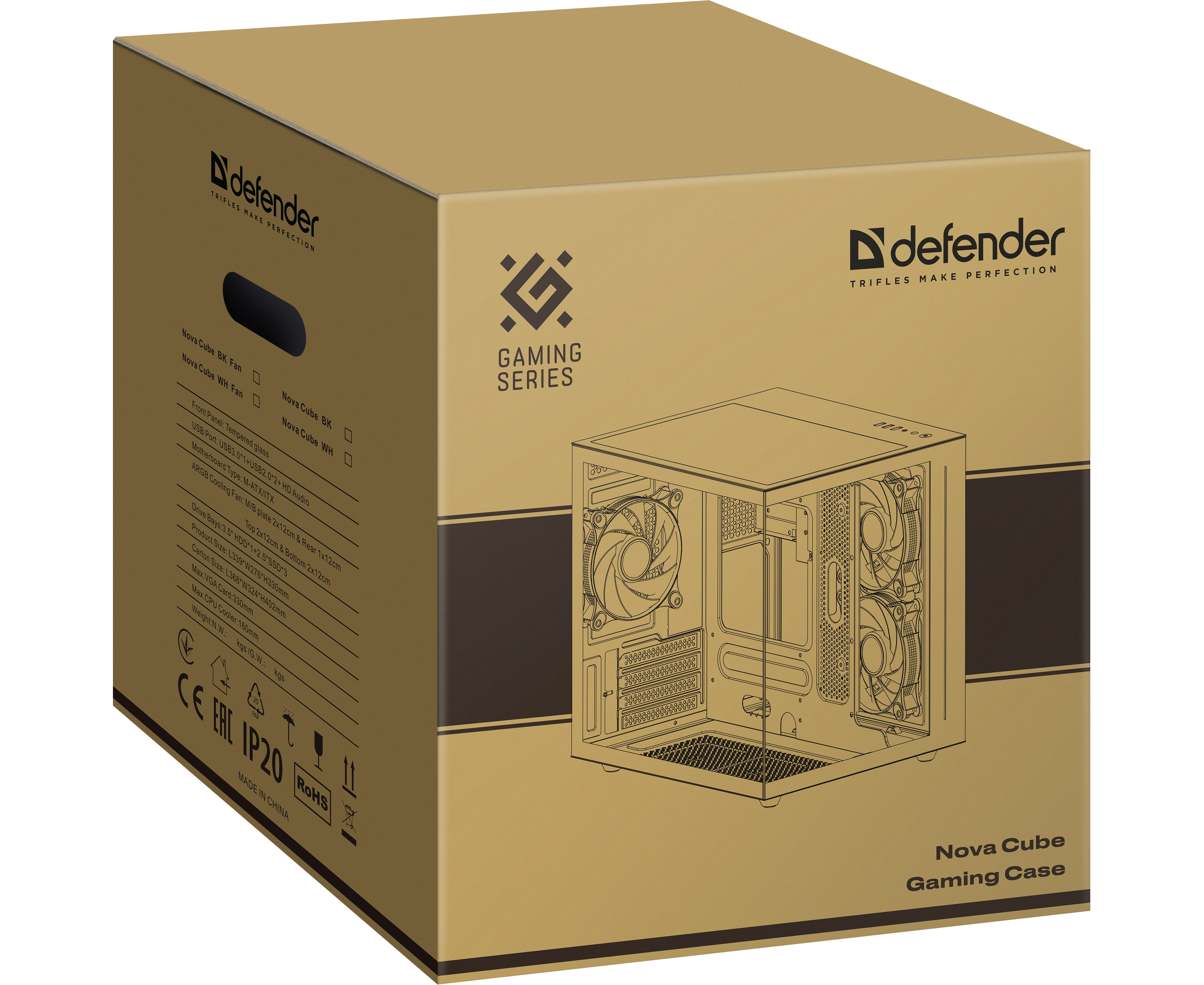 Корпус компьютерный DEFENDER NovaCube белый,mATX,3fan,switch&M/BSynс