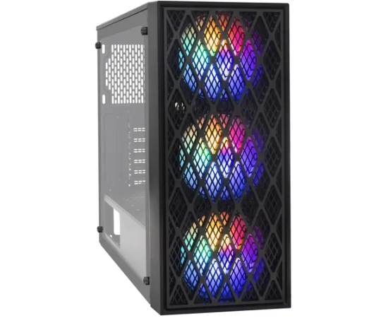 Корпус ExeGate EVO-8243 EX292859RUS Miditower (ATX, без БП, 2*USB+1*USB3.0, черный, 3 вент. с RGB подсветкой, боковая панель - закаленное стекло)