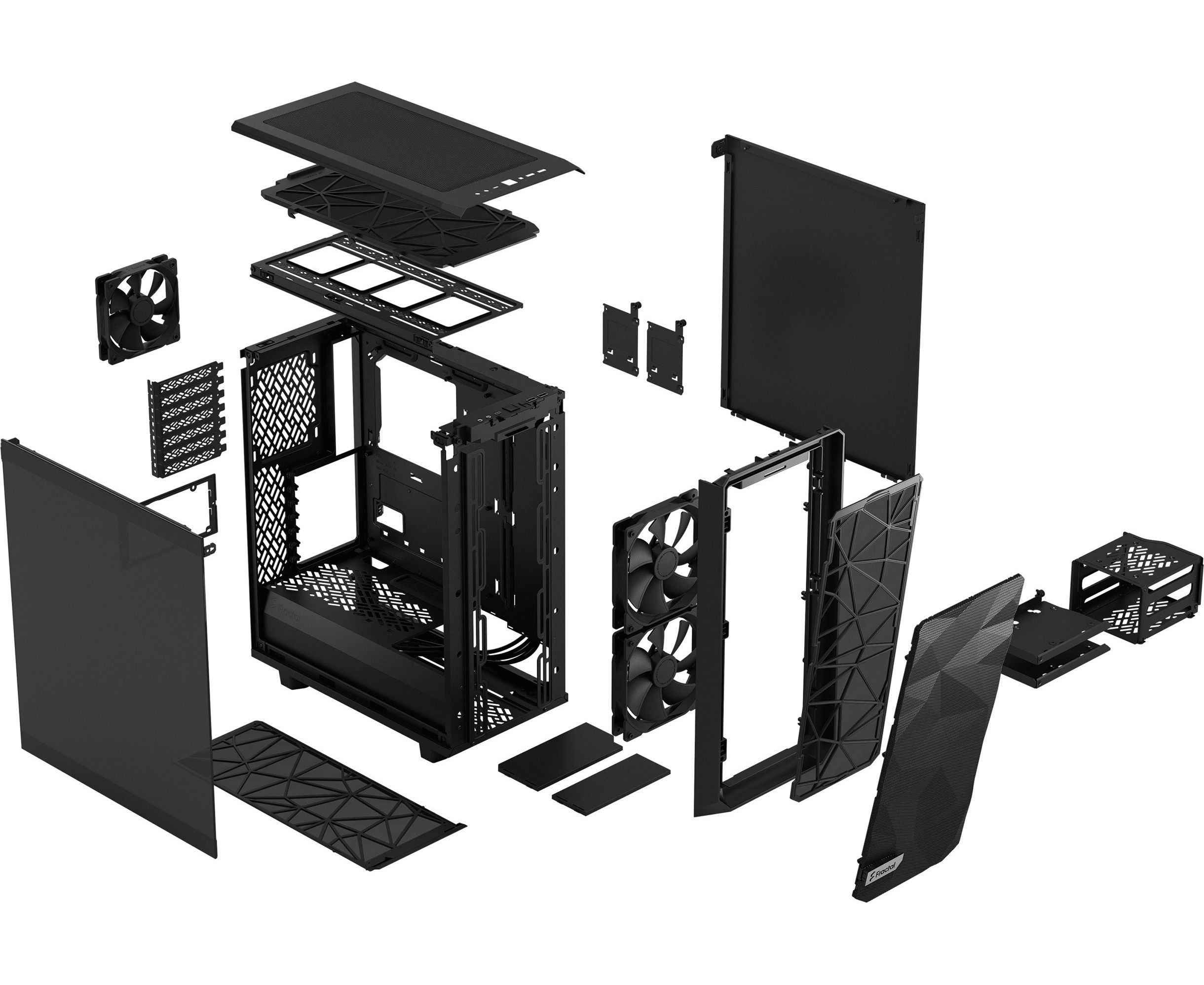 Корпус Fractal Design Meshify 2 Compact Black - DARK TG / ATX, TG / 2x140mm & 1x120mm fans inc. / FD-C-MES2C-02