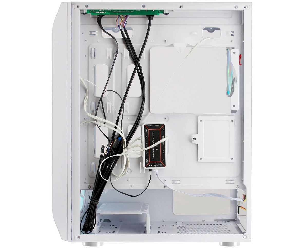 Корпус Ginzzu GL 390 боковая дверца закаленное стекло на петлях на магнитах, controller CRC10, 4* 12R6W Fan 12см RGB белый