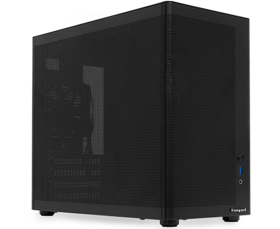 Корпус HSPD M210 (M210-MBK), без БП, Mesh Mid Tower, Black, 0.7 SPCC, 1x90mm mATX, mITX 140/280/150mm 1x2.5", 4xPCI 1xUSB-A 3.0 302x168x350mm