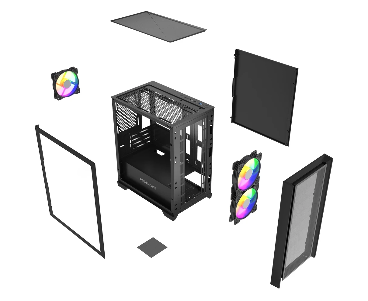 Корпус Powercase Alisio Micro Z3B ARGB V2 (CAMZB-A3-V2), Tempered Glass, 3x 120mm ARGB fan, чёрный, mATX