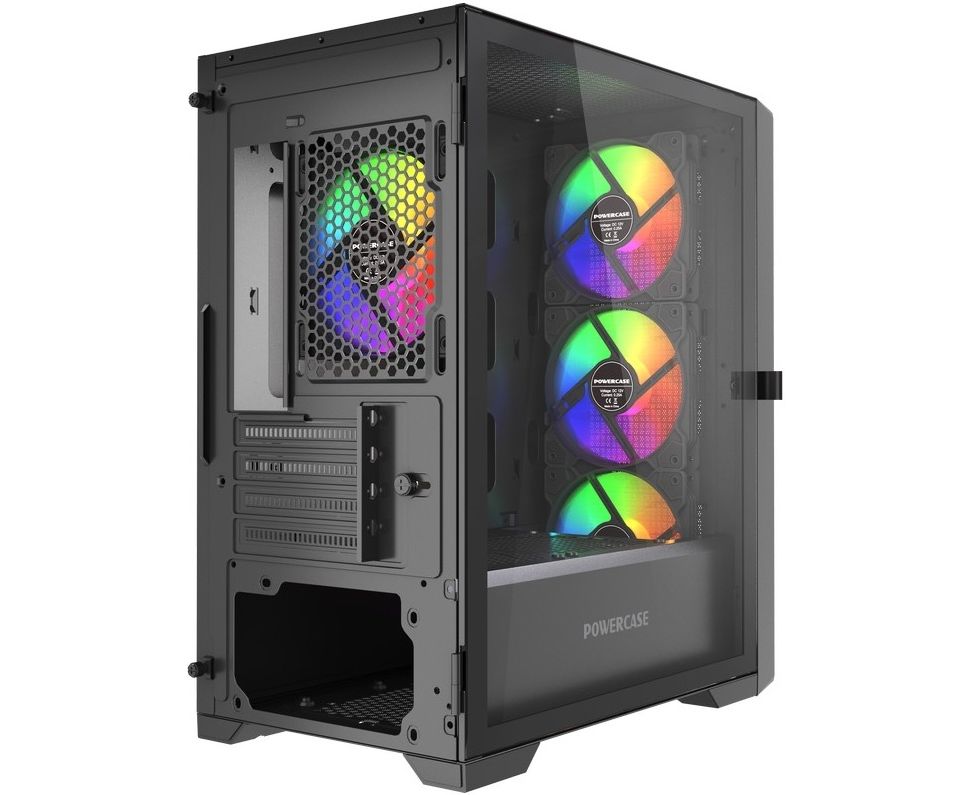 Корпус Powercase ByteFlow Micro Black LE (CAMBFB-A4-LE), Tempered Glass, 4х 120mm ARGB PWM fans, чёрный, mATX
