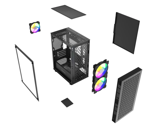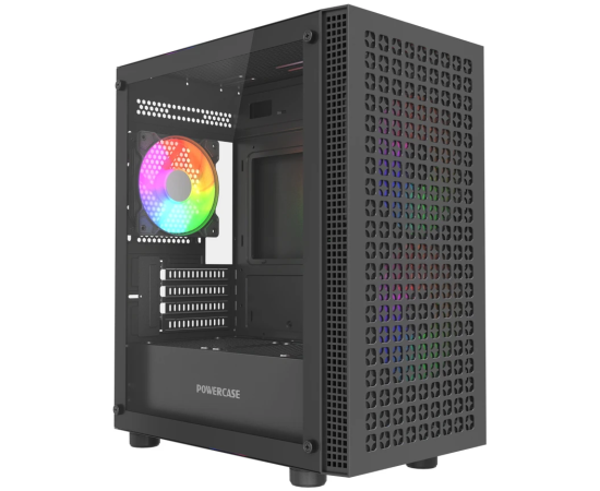 Корпус Powercase Mistral Micro EM18 (CMMEM18B-A3), Tempered Glass, 2x140mm + 1х120mm ARGB PWM fan, чёрный, mATX