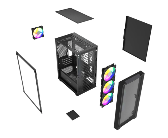 Корпус Powercase Mistral Micro EM19 (CMMEM19B-A4), Tempered Glass, 4x120mm ARGB PWM fan, чёрный, mATX