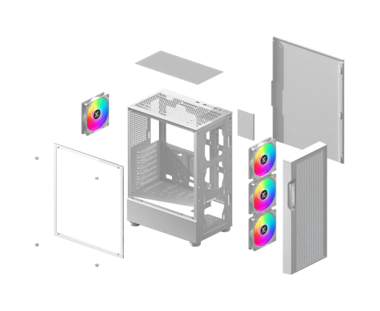 Корпус XASTRA A302 4FRGB White (A302-WH-FC120FRGB-4F-GL) ATX/Mesh/ tempered glass / 4x120mm FC120-FRGB fans