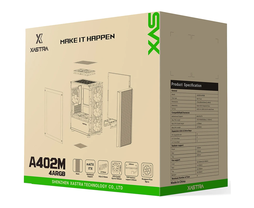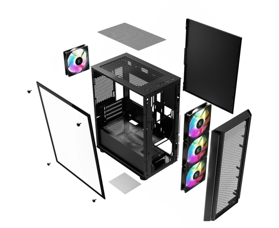 Корпус XASTRA A402M 4ARGB Black (A402M-4FC12A-BK) mATX/Mesh/full-size TG/ 4x120mm ARGB PWM fans
