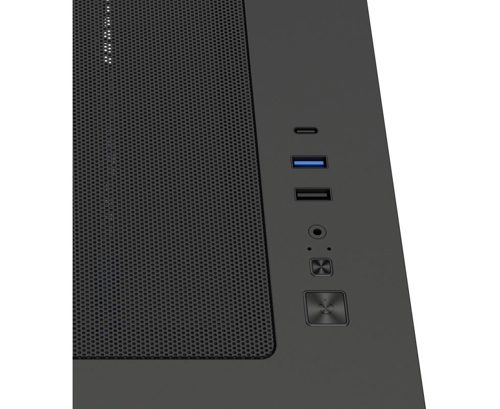 Разъемы на лицевой панели:1x USB 3.0, 3.5 мм комбинированный наушники/микрофон, кнопка Reset, кнопка Power, 1x USB Type C, 1хUSB 2.0