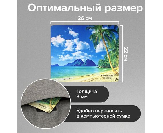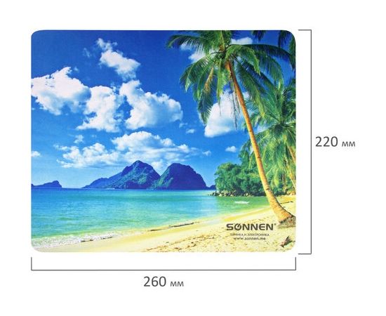 Коврик для мыши Sonnen 513294 BEACH, резина + ткань, 260х220х3мм