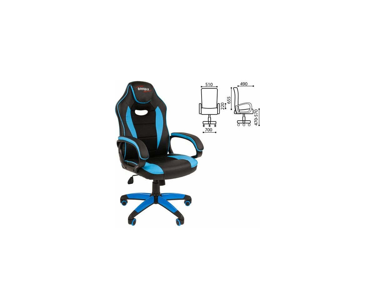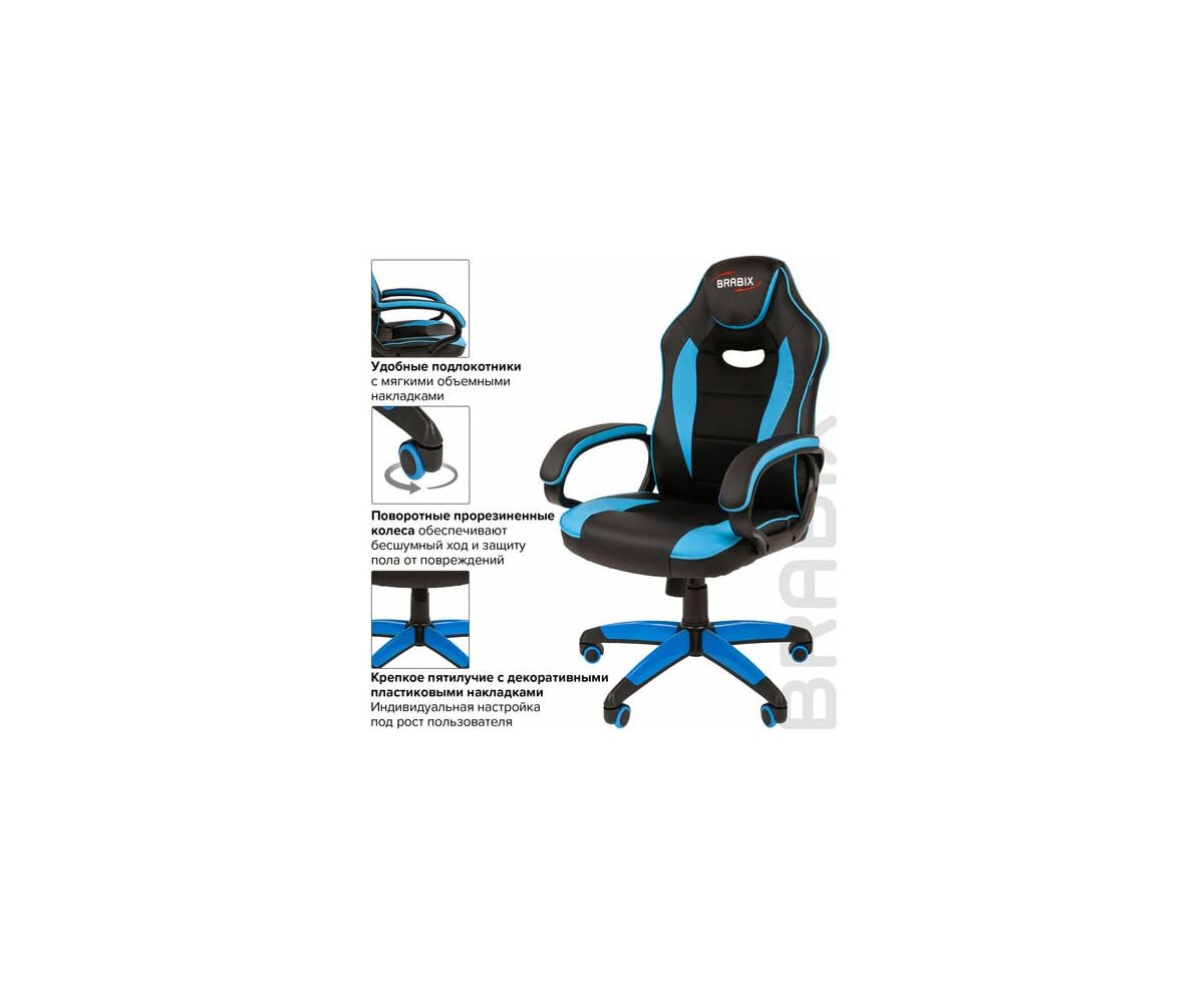 Кресло игровое BRABIX Blaze GM-162 (532578) TW/экокожа, черное/голубое