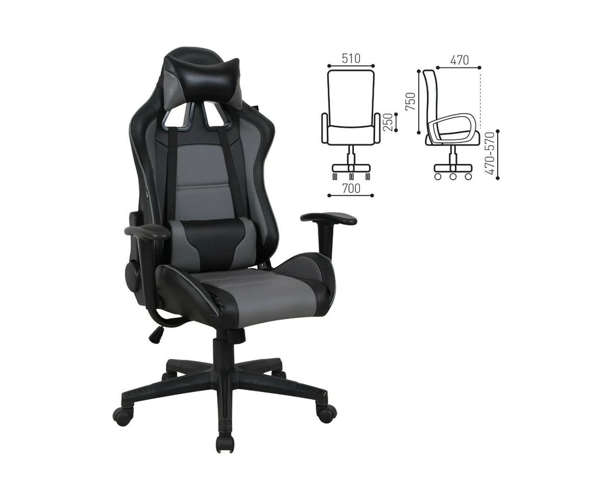 Компьютерное кресло BRABIX GT Racer GM-100 черное/серое 531926 – функциональная модель в комплекте с подушками под поясницу и голову.