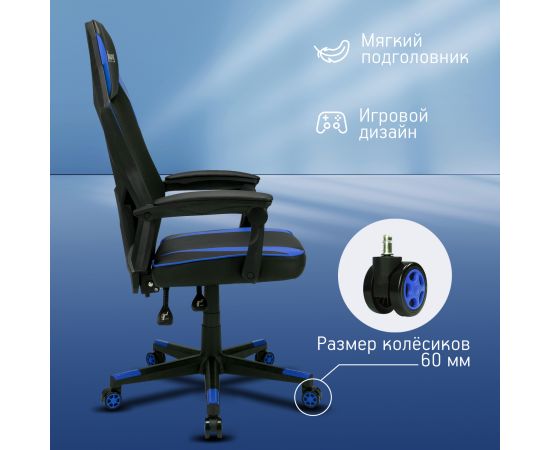 Кресло игровое OKLICK 121G 1987637 черный/синий сиденье черный/синий искусст.кожа/сетка с подголов. крестов. пластик черный
