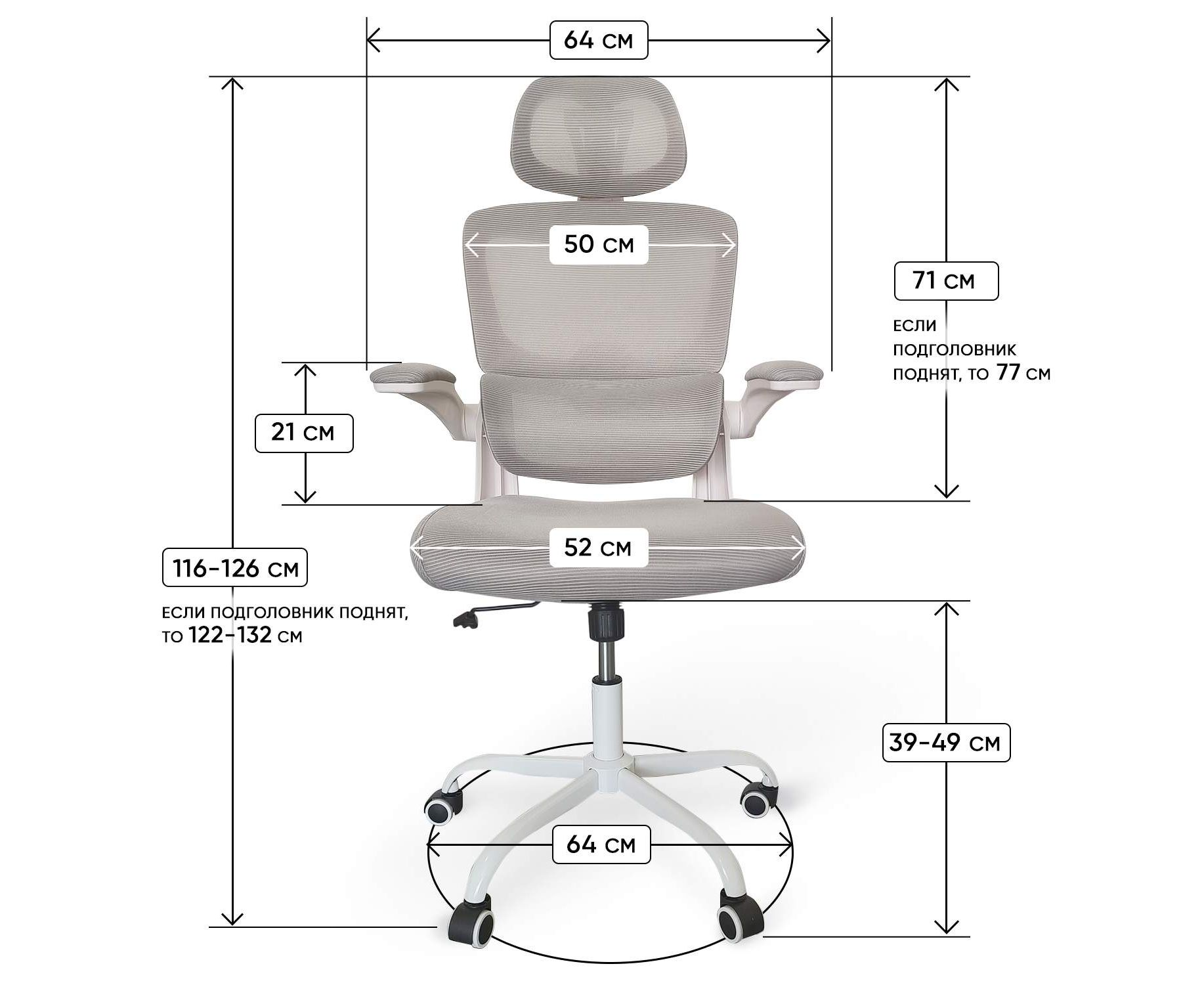 высоты подголовника; высоты сиденья; положения подлокотников