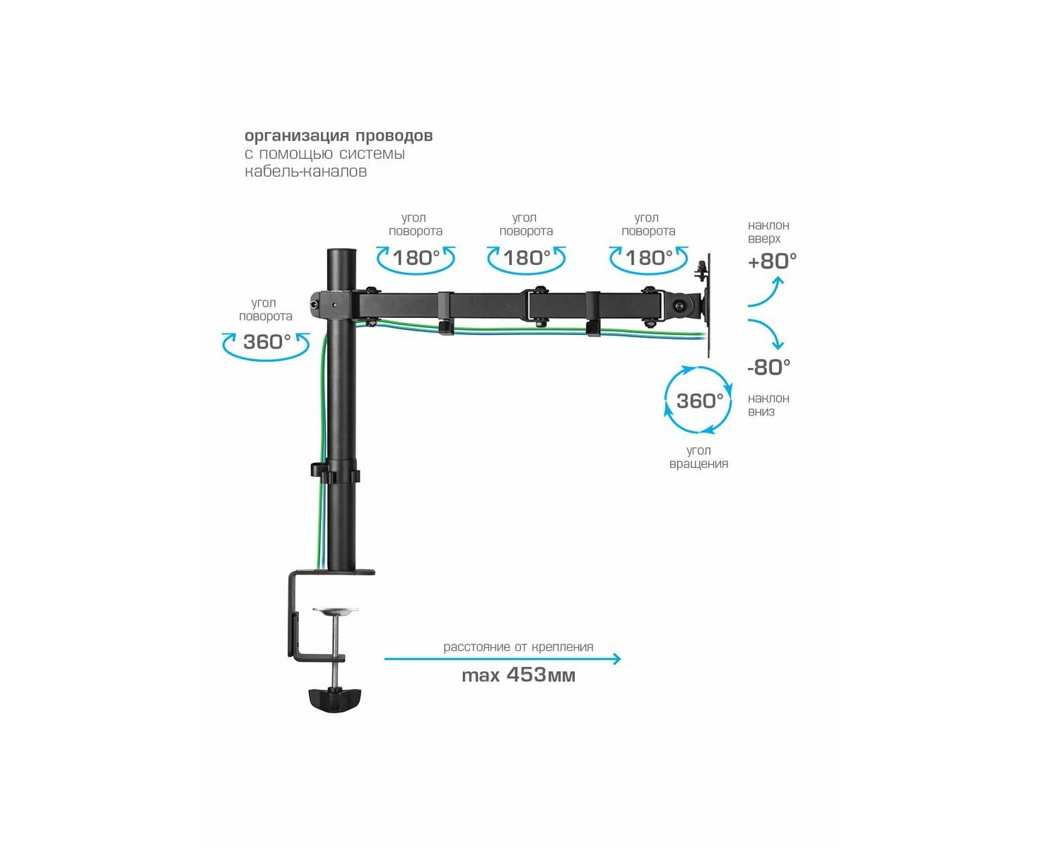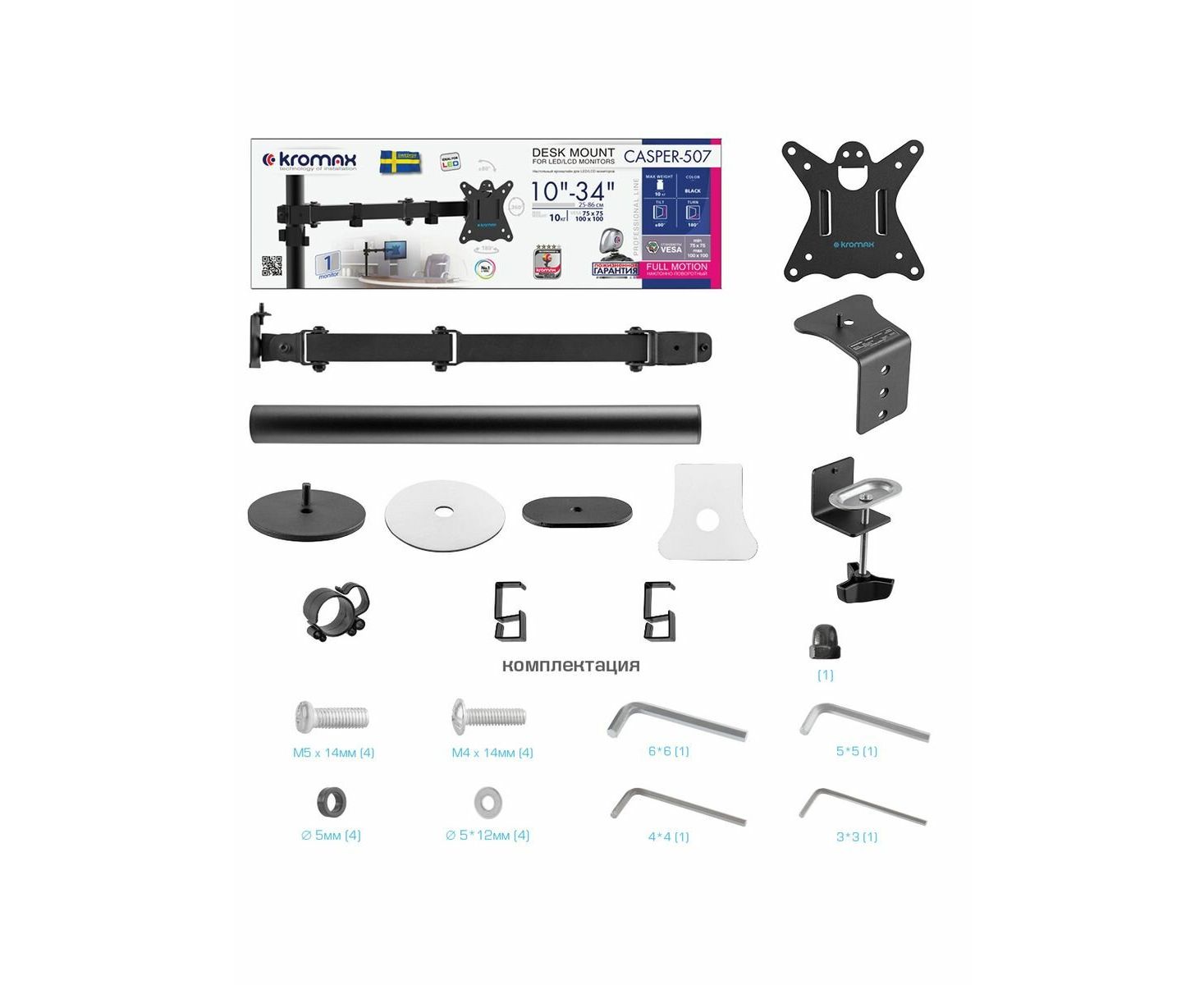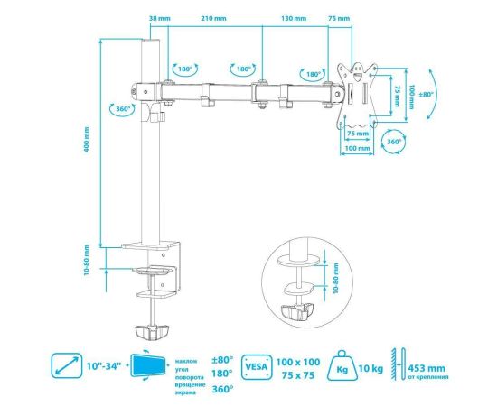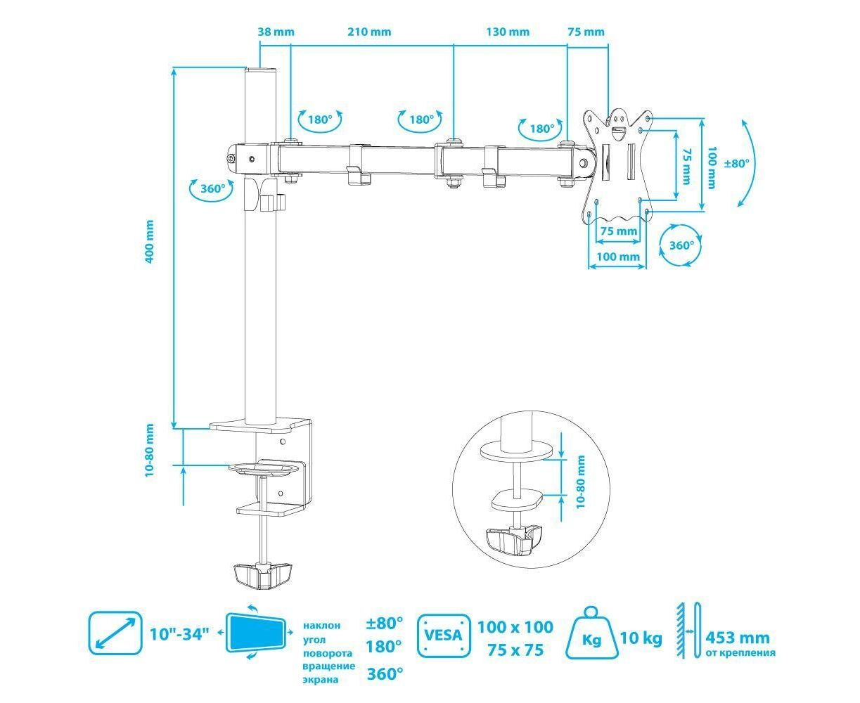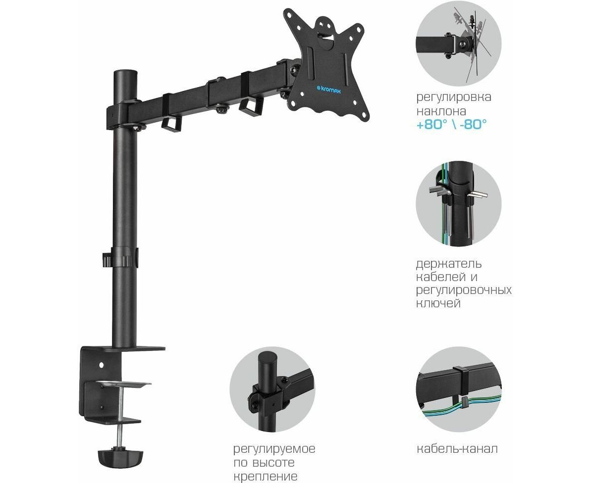 Кронштейн для мониторов Kromax CASPER-507 черный 10"-34" макс.10кг настольный поворот и наклон