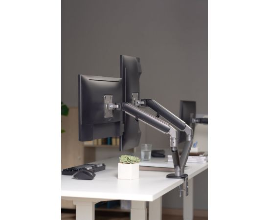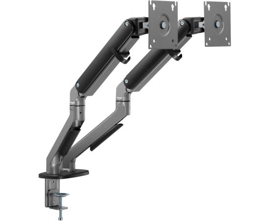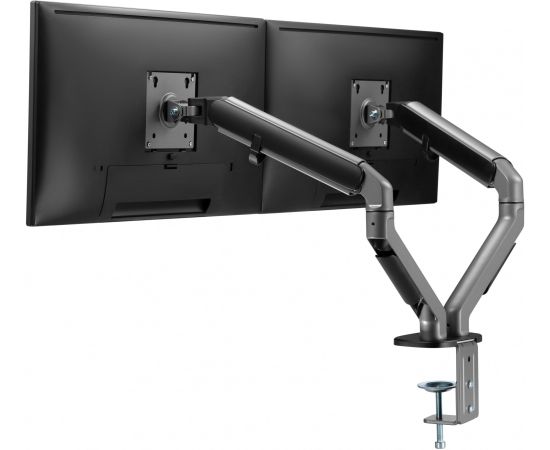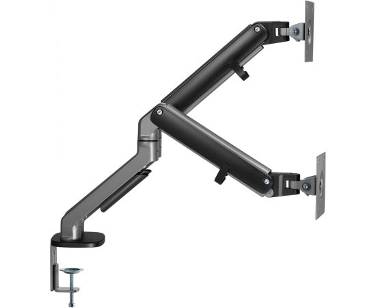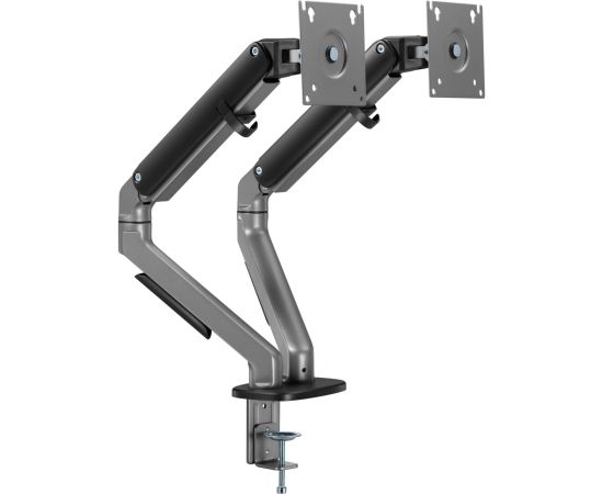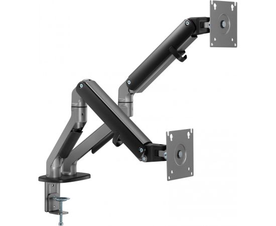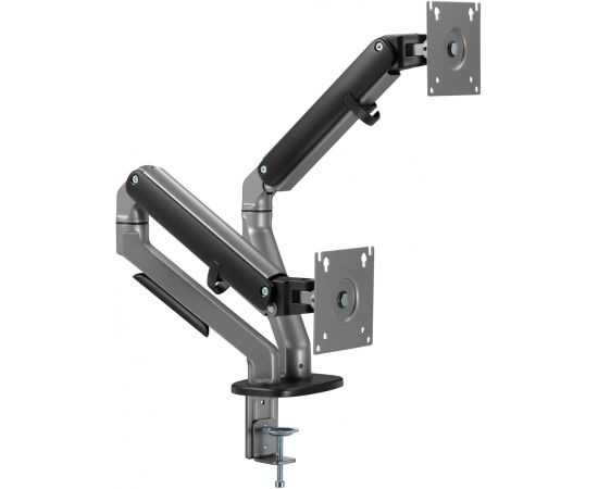 Настольный кронштейн с двумя креплениями под мониторы. Встроенный пружинный механизм натяжения поможет для идеальной регулировки веса.