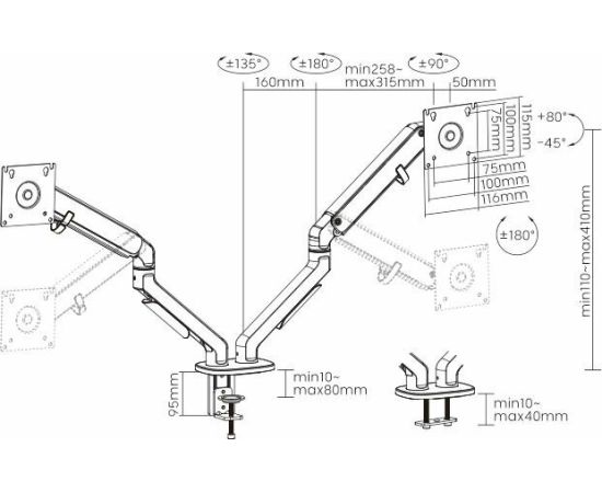 Кронштейн для мониторов Ultramounts UM735SIL серый/серебристый 17"-27" макс.7кг крепление к столешнице поворот и наклон