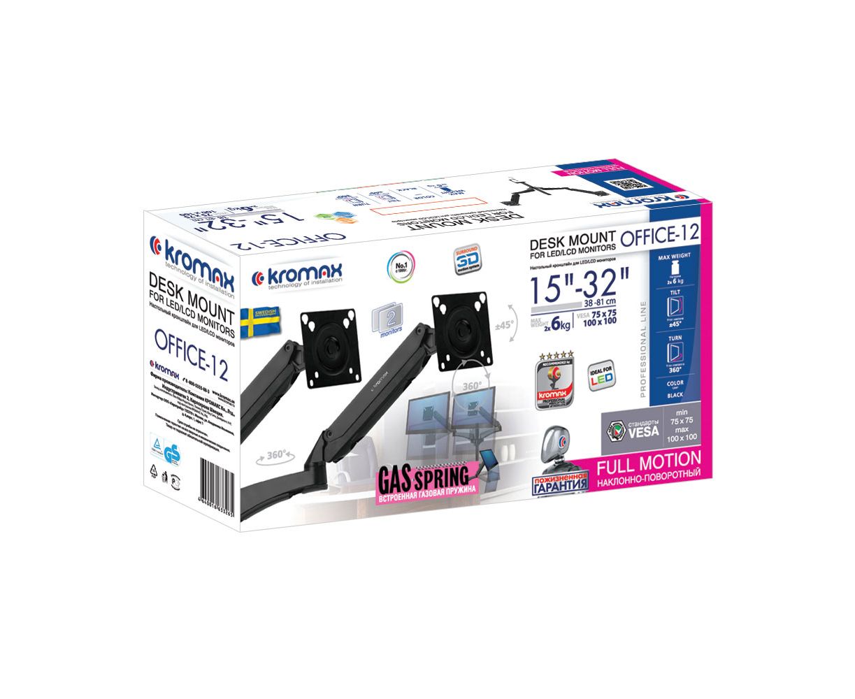 15"-32" Кронштейн Kromax OFFICE-12 макс.12кг настольный поворот и наклон, черный