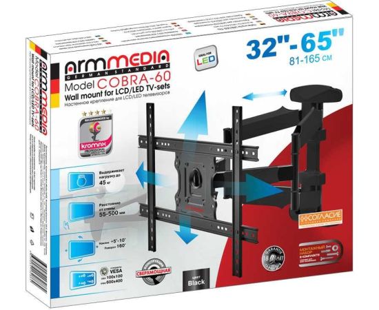 32"-65" Кронштейн Arm Media COBRA-60 Наклонно-поворотный черный до 45кг