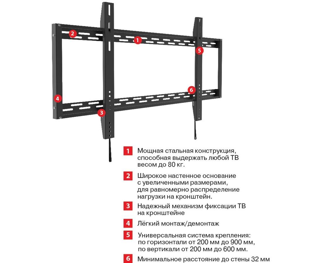 Описание Самый большой кронштейн в линейке ARM MEDIA. Мощная стальная конструкция, способная выдержать любой ТВ весом до 80 кг.