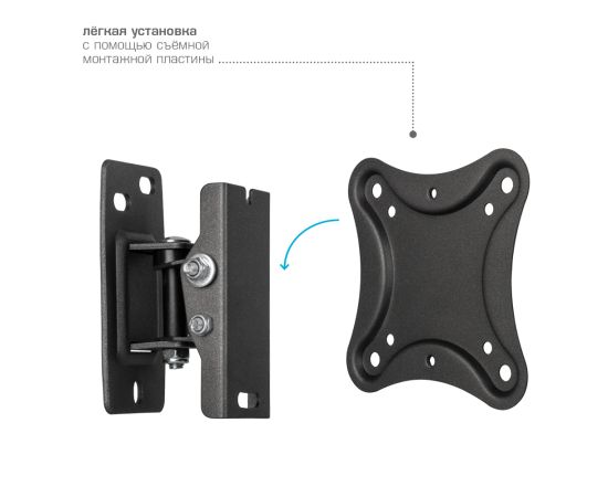 Универсальная система крепления, Легкий монтаж при помощи съемной монтажной пластины, Вращение экрана уникальная возможность вращения экрана на ±5° относительно стены, Надежная стальная конструкция максимальная нагрузка до 25 кг