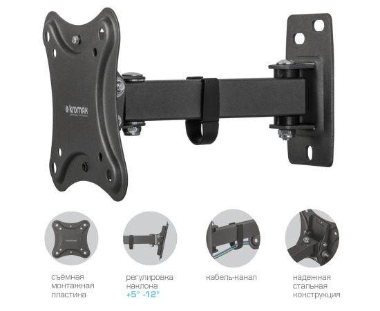 Кронштейн Kromax CORBEL-2 black, 10 шт/уп. Кр. стал. наст. для TV 10"-34", max 25 кг, 4 ст св., нак. +5°-12°,
