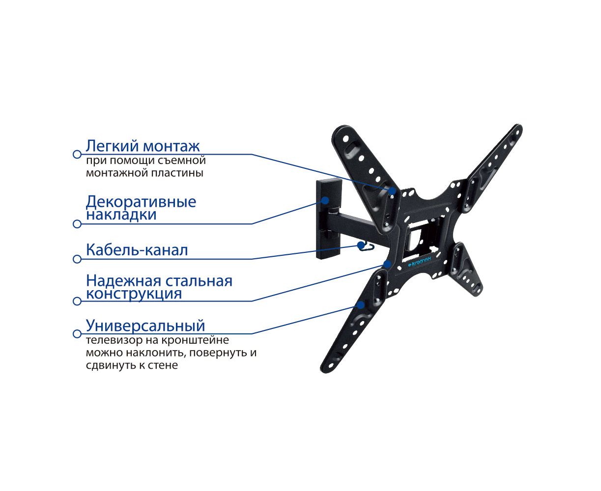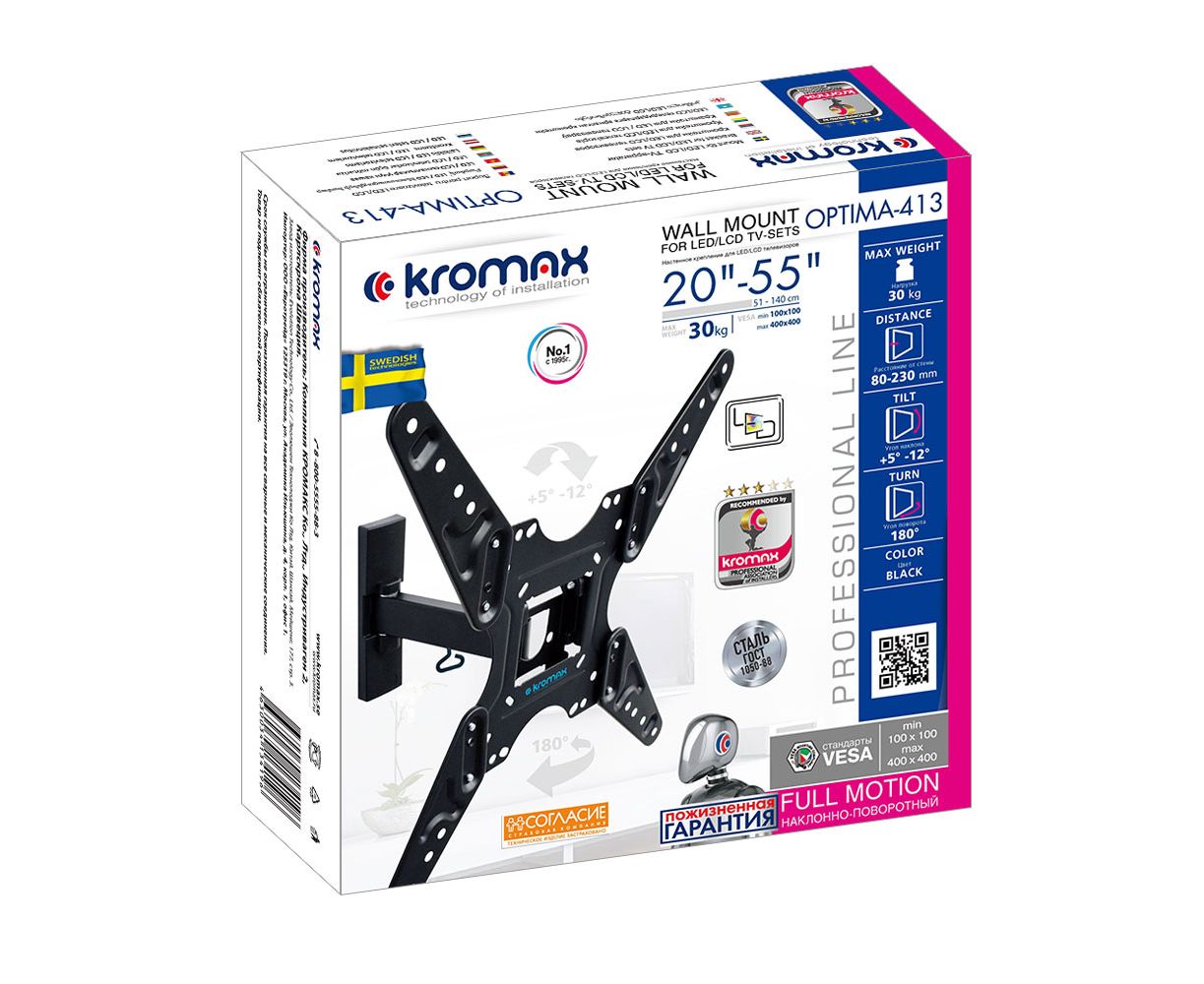 20"-55" Кронштейн Kromax OPTIMA-413 Наклонно-поворотный черный макс 30кг Vesa 400x400