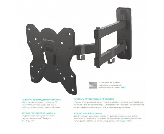 Дополнительная информация: угол наклона: -8° - +8°; угол поворота: 180°; вылет от стены: 65 мм - 448 мм; материал: холоднокатаная сталь (SPCC class)