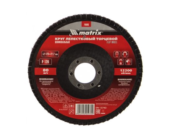 Круг лепестковый торцевой Matrix 74048 P120, 125х22,2 мм