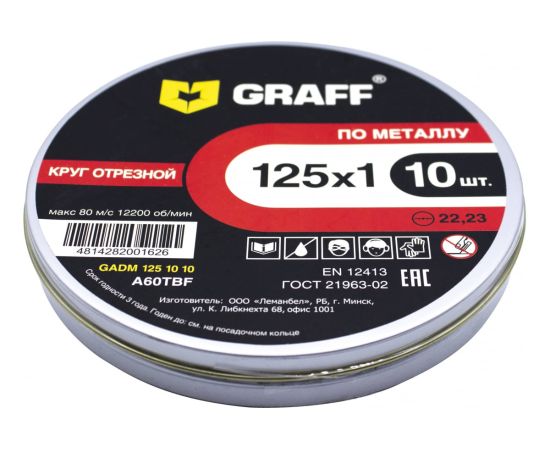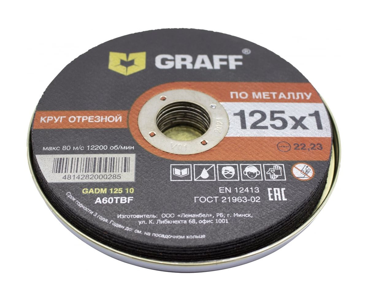 Технические характеристики отрезного круга по металлу GRAFF GADM 125 10 10