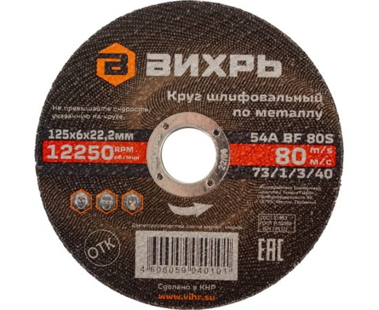 Круг шлифовальный по металлу Вихрь 73/1/3/40 125х6х22,2мм