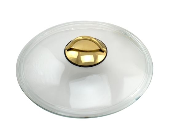 из жаропрочного стекла, безободковая крышка, цвет ручки: золотой, диаметр = 24 см