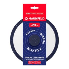Крышка стеклянная MAUNFELD Trinity MGL20SMBK с силиконовым ободком и ручкой, 20см