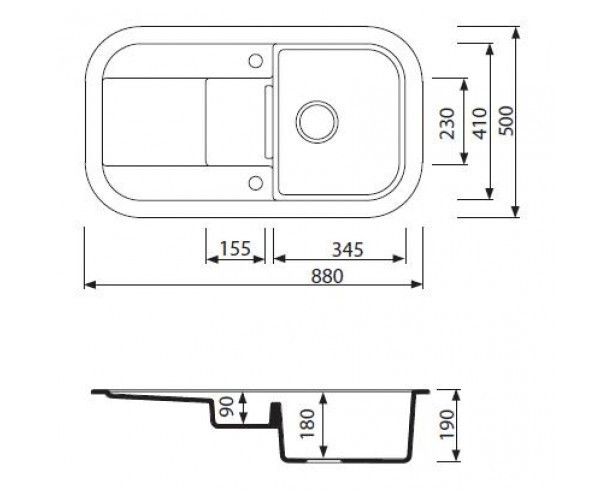 Размер мойки 880х500х190 мм.