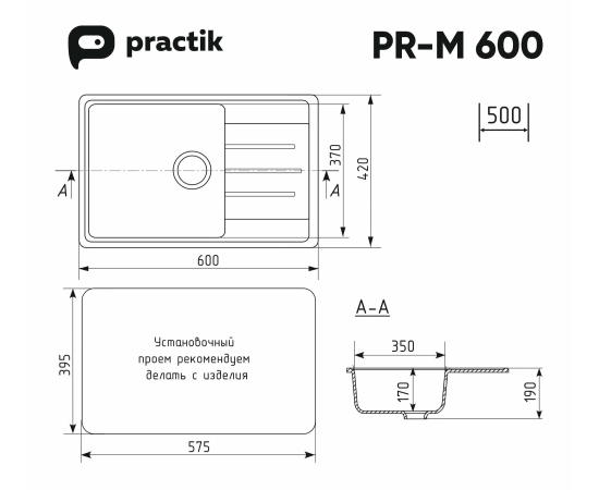Кухонная мойка Practik PR-M 600-001 Белый камень