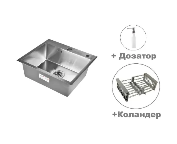 Кухонная мойка Wisent WS35044 Black с коландером, дозатором и сифоном