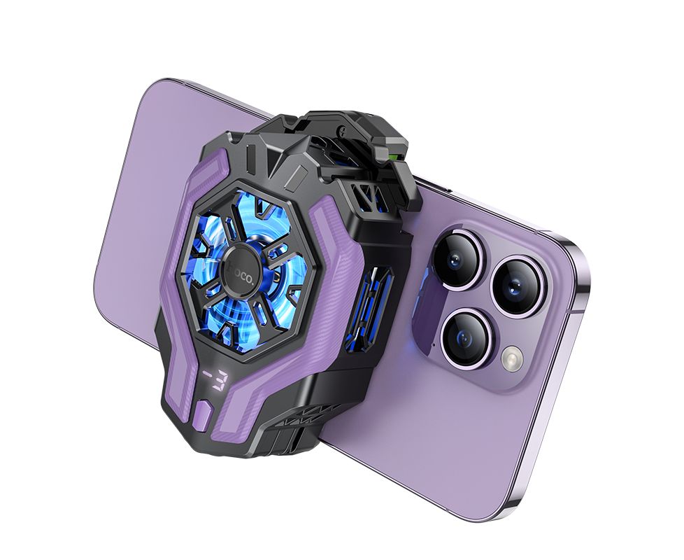 Кулер игровой (охлаждение) для смартфонов HOCO GM26 Ambitious cooling mobile phone fan (черный/фиолетовый)