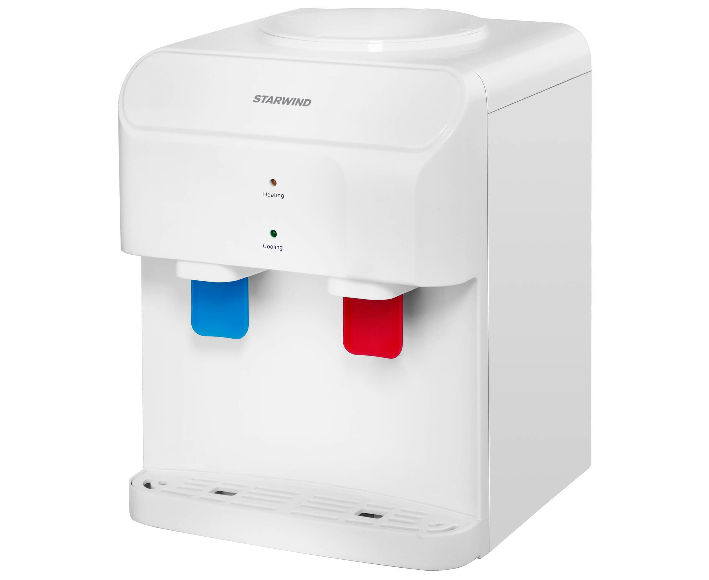 Бутылка с водой в данной модели эргономично размещается сверху, что дополнительно экономит место. Габариты устройства выполнены таким образом, чтобы оно занимало минимум места и приносило максимум пользы. Выполнен в лаконичном светлом дизайне, который органично впишется и в дом, и в офис.