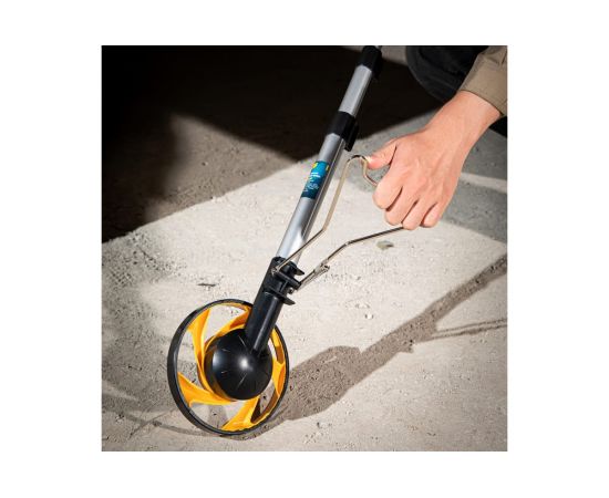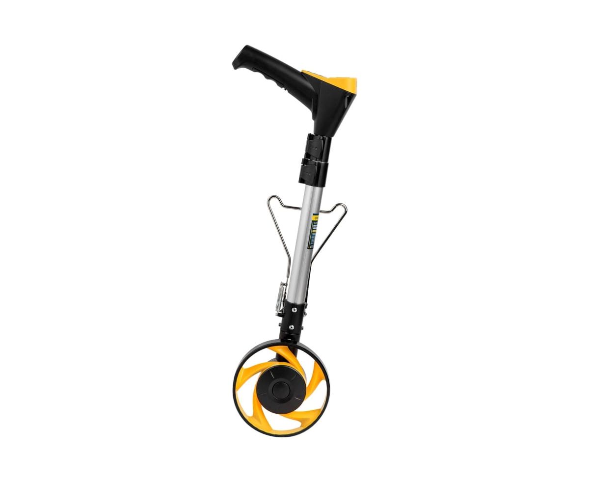 Измерительно колесо оснащено удобной подножкой для установки колеса в вертикальное положение.